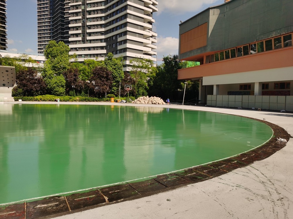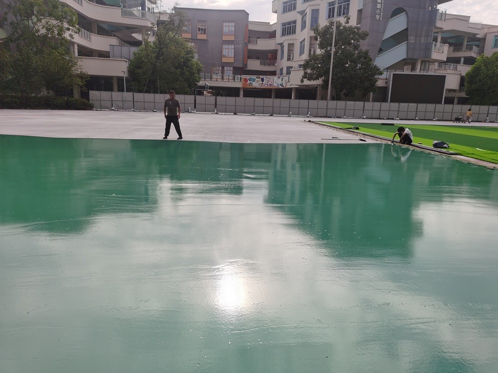 2025年8月12日天府新区麓湖小学运动场暑期维修改造工程篮球硅PU施工